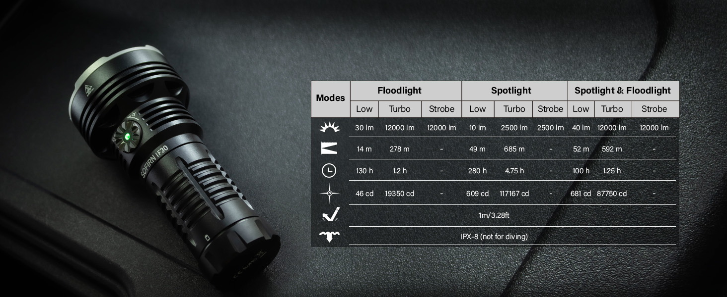 SOFIRN IF30 Latarka EDC mocna, 12000 lm, 685 m,bateria 32650, IPX8