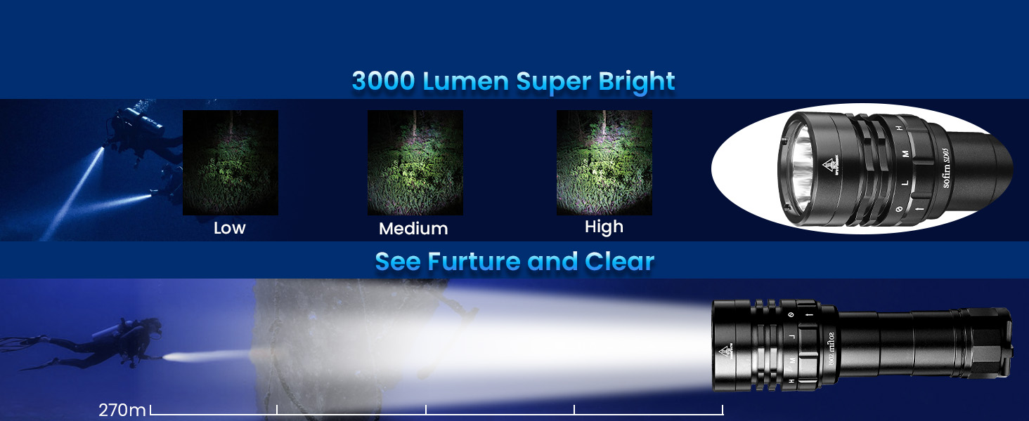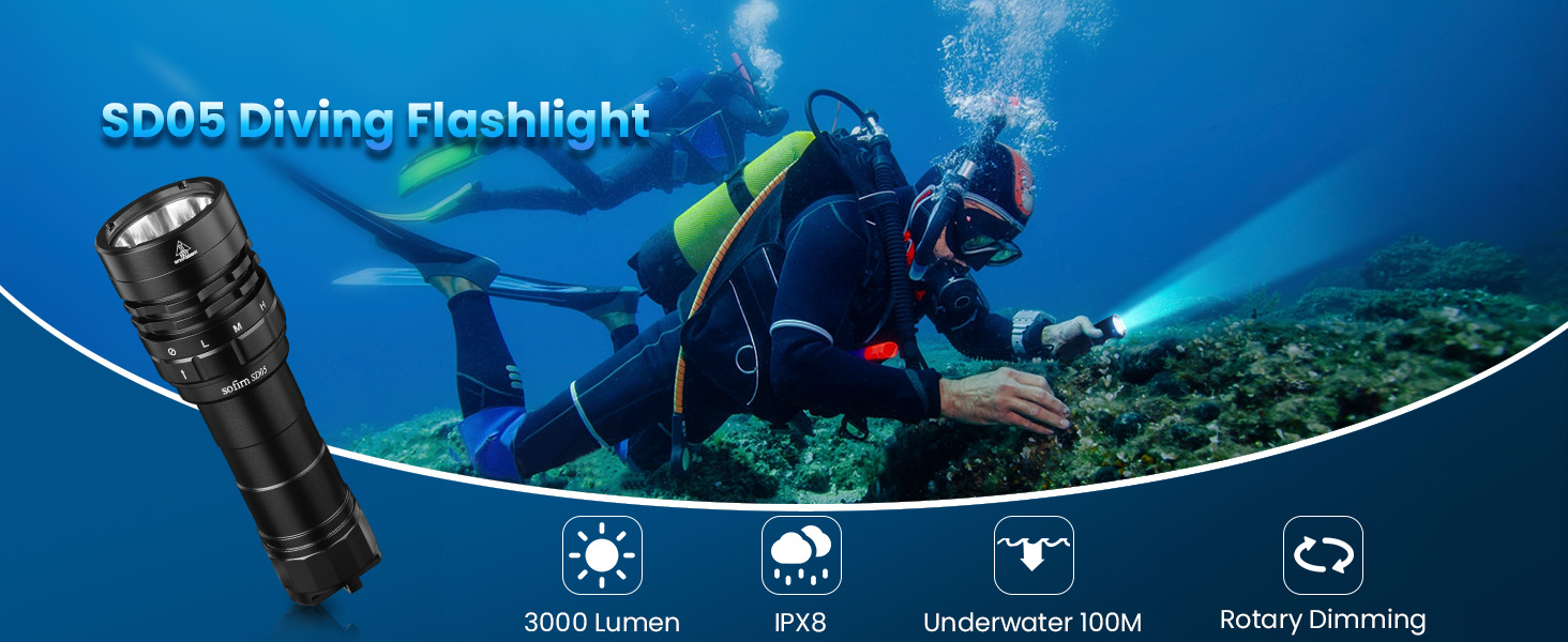 SOFIRN SD05 Latarka nurkowa 3000 lm, 270 m, IPX8, akumulator