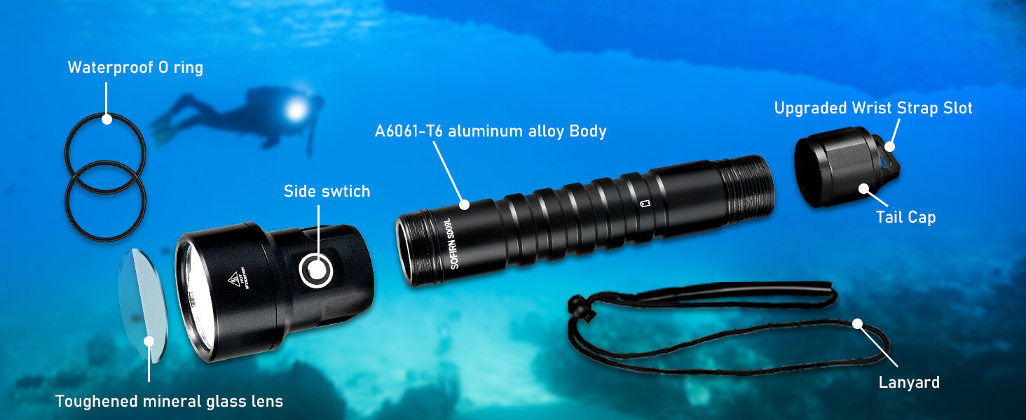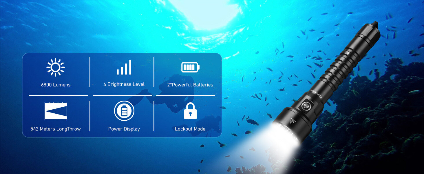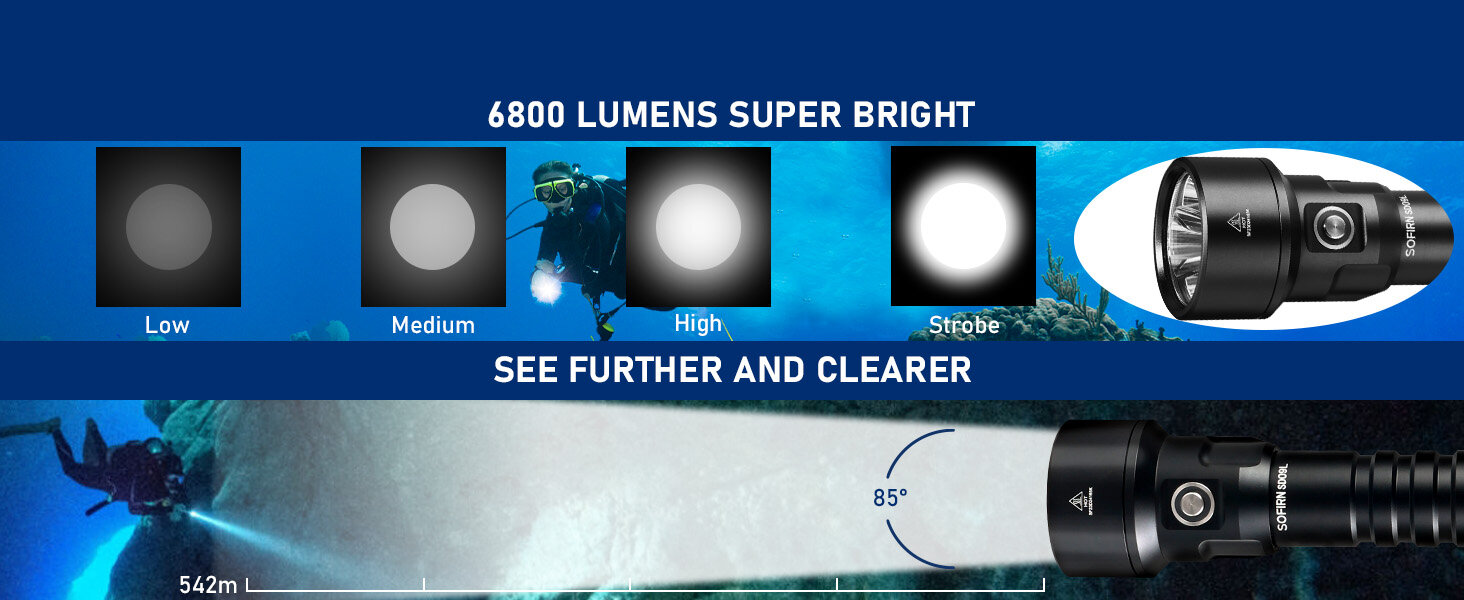 SOFIRN SD09L Super jasna latarka nurkowa 6800 lm, 542 m, IPX8, 21700